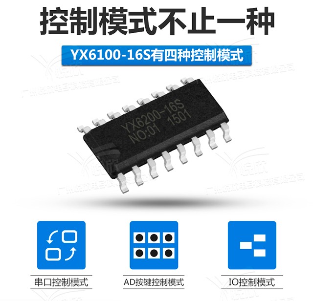 YX6100-16S和YX6200-16S語(yǔ)音芯片同系列產(chǎn)品,可外掛軟件 2M~32Mbit 的SPI-flash,語(yǔ)音內(nèi)容等均儲(chǔ)放在 SPI-flash 里邊,能夠反復(fù)燒寫拆換語(yǔ)音內(nèi)容和操縱方式,輸出方式等。