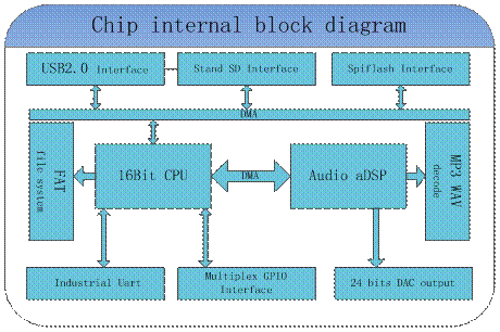 芯片選用的是SOC方案,集成了一個(gè)16位的MCU,以及一個(gè)專門(mén)針對(duì)音頻解碼的aDSP,采用硬解碼的方式,更加保廣告法證了系統(tǒng)的穩(wěn)定性和音質(zhì)。小巧的封裝尺寸更加滿足嵌入其它產(chǎn)品的需求