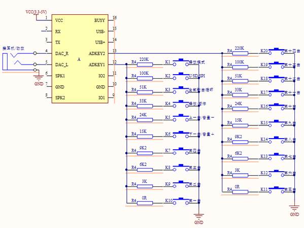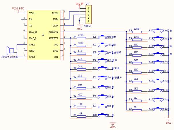 5、芯片的 供 電 只 有 一 種 ,就 是 3.3V~5V。如 果 需 要 支 持 U 盤(pán) 播 放 的 話 ,供 電 電 壓 一 定 不 能 低 于 3.7V